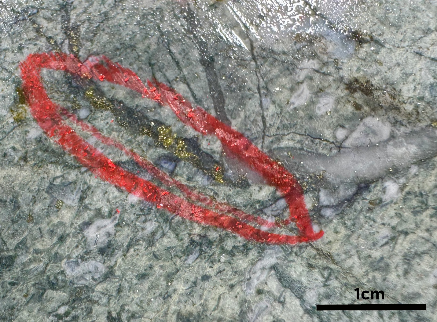 Drill hole MC25-215 was designed to test for gold mineralization associated with felsic intrusions adjacent to the Pipestone Fault, located 925 m southwest of Argus North. The hole returned 1.5 m grading 4.8 g/t Au in fine-grained metasedimentary rocks, confirming a new, fertile gold mineralizing environment. The metasedimentary rocks are intruded by multiple quartz-feldspar porphyritic intrusions, up to 50 m thick and are strongly sericite-altered with quartz-carbonate veining.